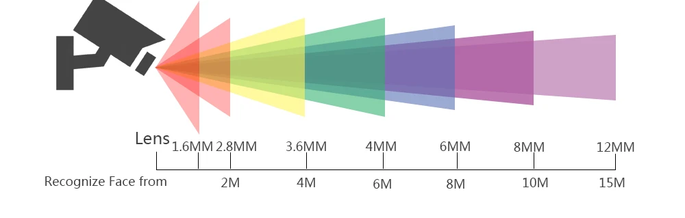 2.8mm Wide-Angle Lens, with a viewing angle of approximately 100 degrees, ideal for monitoring medium-sized areas such as living rooms and offices. It delivers clear images with rich details.