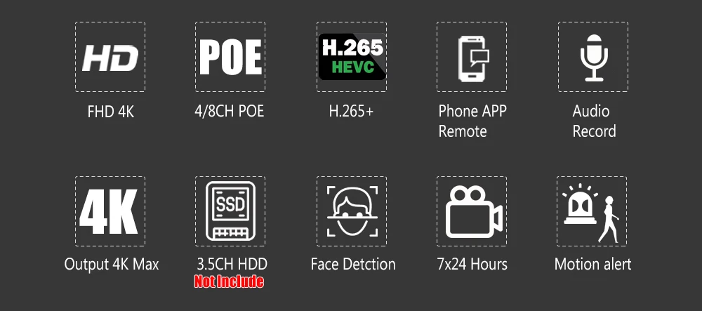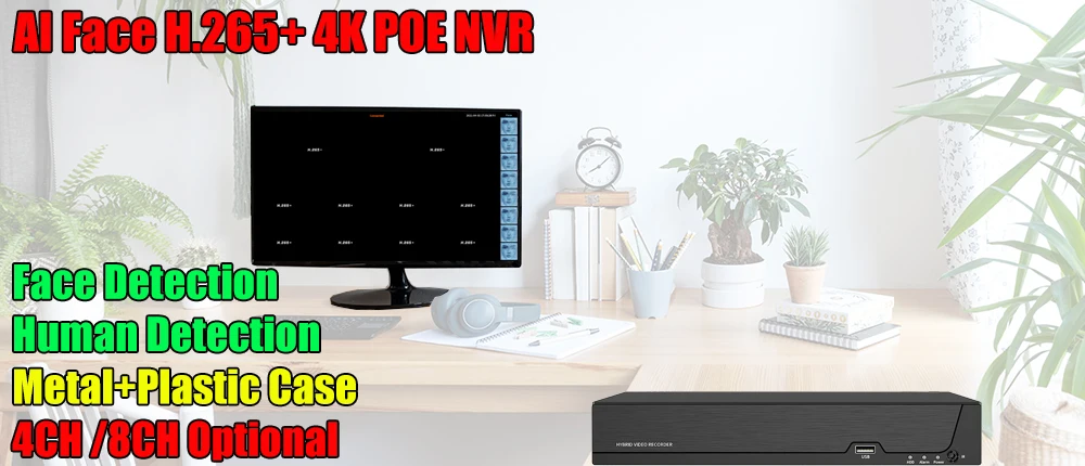 8ch 4ch 4K PoE NVR H.265 with Face detection Human Detection