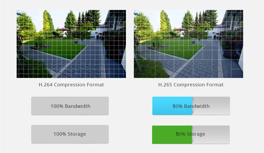 Advanced H.265++ Video CompressionH.265 (HEVC) doubles the coding efficiency compared with its predecessor H.264. That means H.265++ video saves around 70% of the bit rate at the same quality of coding.