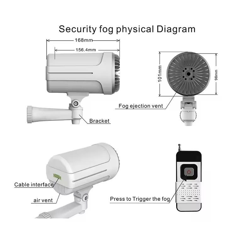 Fog performance Cold smoke, 1 second triggered, protect critical area in 3 seconds, cover the protected area in 8 seconds.