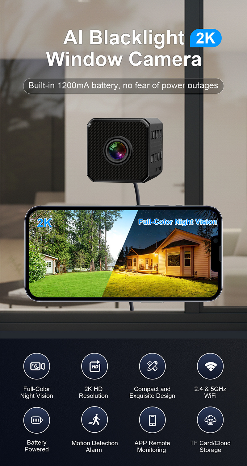 Battery-Powered AI Window Camera | F1.0 Blacklight Lens for True 24/7 Full-Color Vision