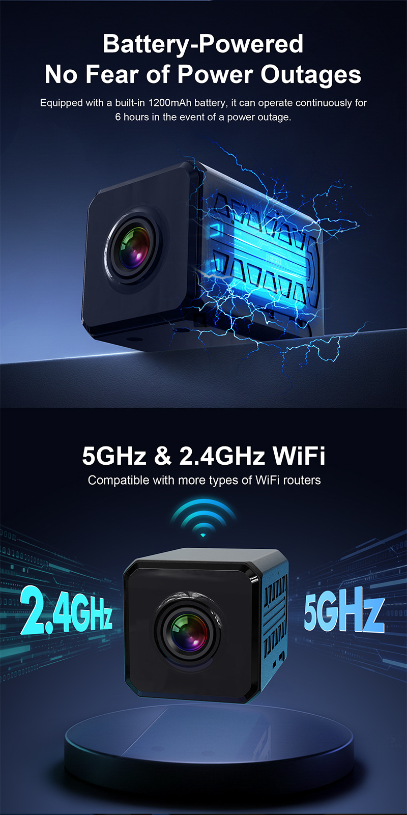Built-in 1200mAh battery, it can operate continuously for 6 hours during power outages, eliminating gaps in monitoring.